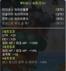 말그대로 이걸 착용하면 카루타와 앱솔의 세트효과를 모두 쓸 수 있다.