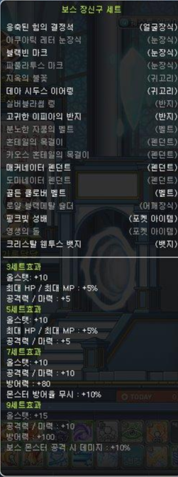 마지막으로 중요한 세트장비가 또 있다. 바로 보스장신구 (보장)